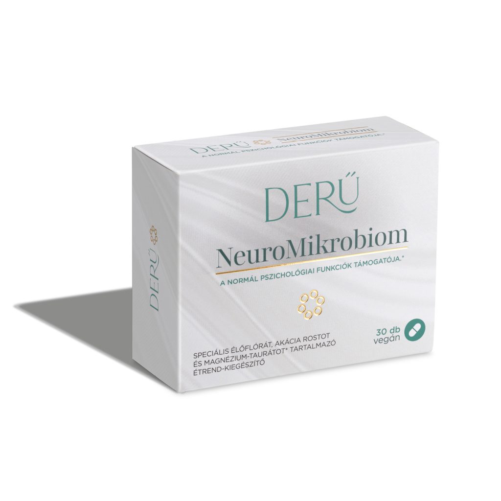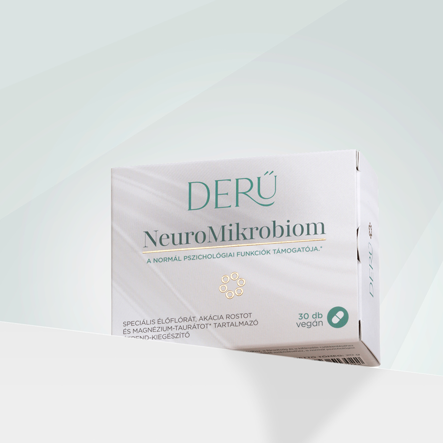 A Derű NeuroMikrobiom célzott probiotikus törzseinek és magnézium-taurátjának kombinációja kíméletesen támogatja a bélflóra egyensúlyát – és ezzel együtt a kiegyensúlyozottabb hangulatot.